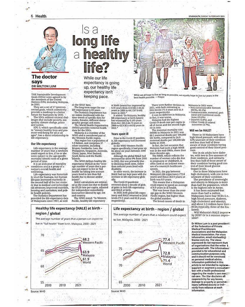 The Star | Is A Long Life A Healthy Life? by Dr Milton Lum